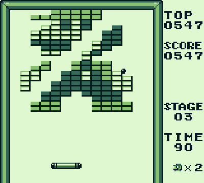 Alleyway’s a zen experience. A block breaker game with no time limit. If you can keep the ball on the paddle, and keep hitting the blocks, you’re golden, move onto the next level. The ball doesn’t move that quickly, so it’s not terribly hard to keep hitting it, back and forth, back and forth.